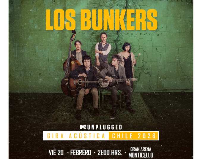 Los Bunkers sigue marcando hitos con su “Gira Acústica 2025”; con 56 shows agotados en Chile llegarán a Gran Arena Monticello el próximo viernes 20 de febrero, para mostrar un show que ha sido aplaudido por miles de fanáticos y destacado como un gran espectáculo por la prensa especializada. Las entradas se pondrán a la venta el martes 4 de noviembre a las 14.00 horas, por el sistema Ticketmaster.