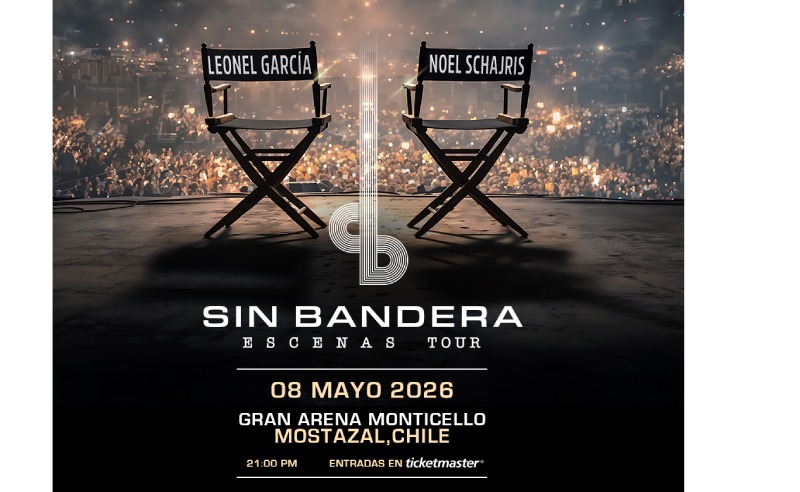 El dúo más importante de la música romántica en español, Sin Bandera, regresa a Chile con ESCENAS TOUR, una gira que los llevará a los escenarios más importantes del continente americano y de Europa, comenzando en febrero del 2026 en Argentina. El tour promete un recorrido musical único incluyendo canciones que hicieron historia interpretadas en un show íntimo, emotivo y lleno de nostalgia. Las entradas para el viernes 8 de mayo, Gran Arena Monticello, ya están a la venta por el sistema Ticketmaster.